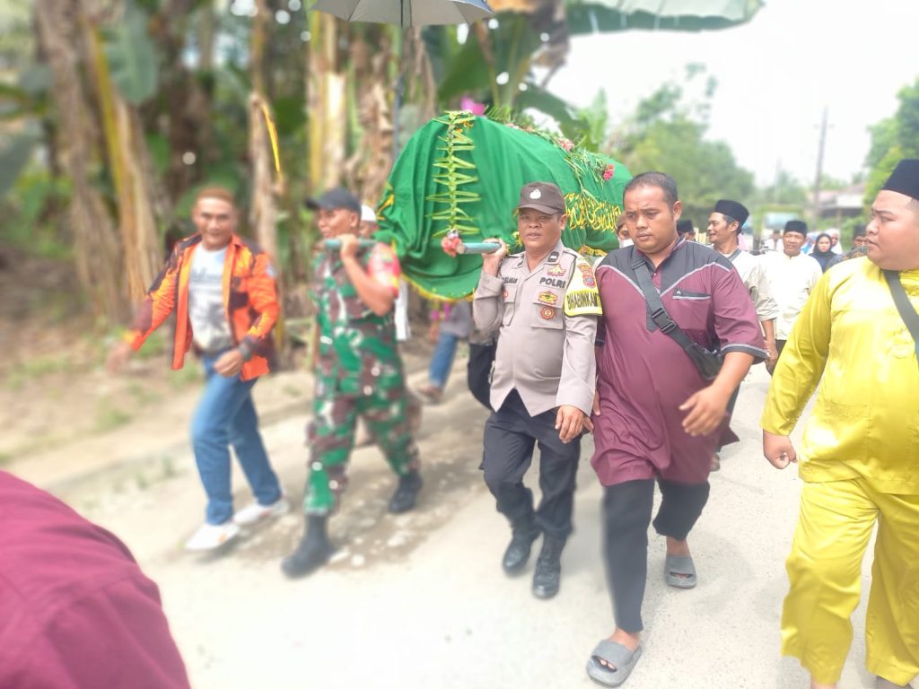 bersama Babinsa Serda A.MANALU menunjukkan kepedulian yang tinggi dengan membantu keluarga almarhum dalam proses pemakaman, mulai dari membantu mengangkat keranda jenazah hingga memberikan dukungan moral kepada keluarga yang ditinggalkan. Kehadiran kedua aparat ini memberikan semangat bagi warga yang sedang berduka dan menunjukkan bahwa mereka tidak sendirian dalam menghadapi kehilangan.