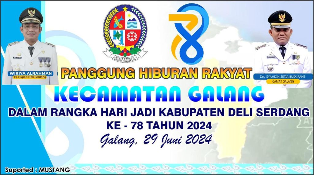 Camat Galang Drs Syahdin Setia Budi Pane saat dikonfirmasi mengatakan acara panggung hiburan rakyat nantinya untuk menghibur warga dalam rangka memeriahkan hari jadi Kabupaten Deli Serdang yang ke-78.